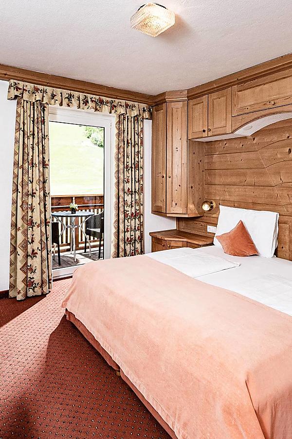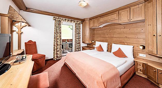 Mit seinen ca. 22 m² ist das Zimmer ideal für 1 bis 2 Personen. Das Dolasilla Zimmer ist ausgestattet mit einem 42-Zoll-TV, eigenem Bad mit Badewanne oder Dusche, WC, Bidet, Haartrockner, Telefon, Safe, Minibar, kostenlosem WIFI, Teppichboden, privatem Balkon mit Tisch und Stühlen.