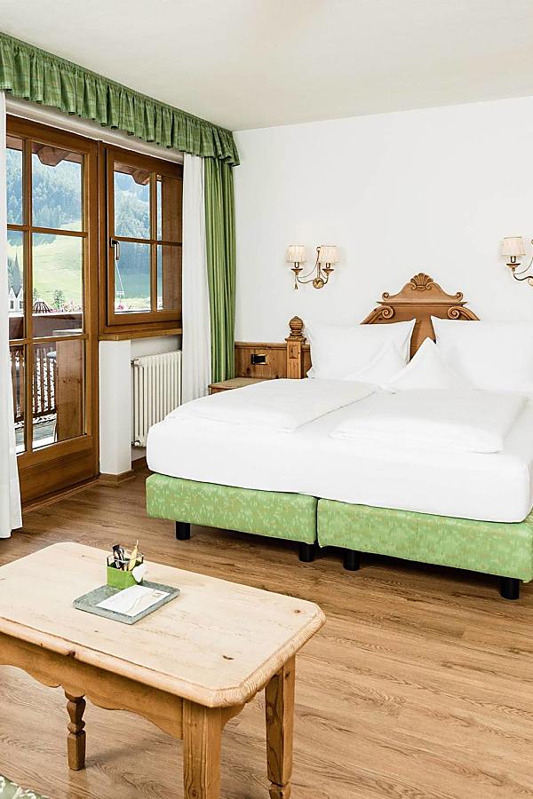 With its approx. 30 m² the room is ideal for 1 to 3 people. The 3rd person stays in an extra bed such as a sofa bed / armchair bed. The Rajeta room is equipped with a 42" TV, private bathroom with tub or shower, toilet, bidet, hairdryer, telephone, safe, minibar, free WIFI, parquet or carpeted floors, private balcony with table and chairs.